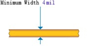| 最小线宽 | 4mil | 线宽尽可能大于4mil,最小不得小于4mil。如右图 | ![]() |