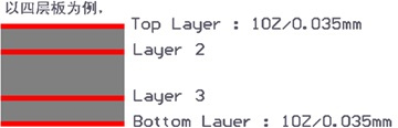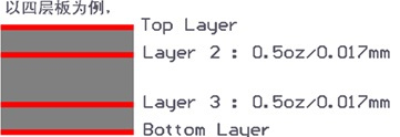 | 成品内层铜厚 | 0.5oz(17um) | 电路板内层铜箔线路厚度统一为0.5oz。如右图 | ![]() |