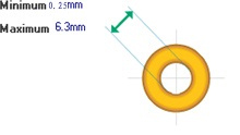 | 钻孔孔径(机械钻) | 0.25~6.3mm | 最小孔径0.25mm,最大孔径6.3mm, 如果大于6.3mm工厂 要另行处理。 机械钻头规格为0.05mm为一阶, 如0.25mm, 0.3mm,0.35mm,0.4mm…。如右图 |