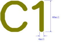 | 最小字符宽 | 6mil | 字符最小的宽度,如果小于6mil, 实物板可能会因设计原因 而造成字符不清晰。如右图 |